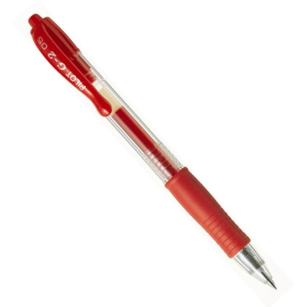 Kuličkové pero gelové PILOT G2/0,5 červené Výsuvný gelový roller G-2 s ergonomickým gumovým úchopem v místě držení pera pro zajištění komfortu při použití a zamezení napětí při dlouhotrvajícím psaní. Vyměnitelná náplň s vysoce odolnou kuličkou si ponechává svůj tvar i při dlouhodobém užívání. Píše podle barvy úchopu, viditelný stav náplně. Gumová rukojeť pro příjemné držení. Barva těla odpovídá barvě náplně. Praktické řešení pro dlouhodobé a komfortní psaní v kanceláři i škole.