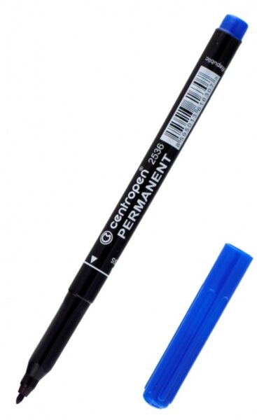 Centropen 2536 Permanent píše na většinu povrchů, je permanentní s válcovým hrotem, má ERGO držení pro snadné psaní a je odolný proti vodě, otěřu a povětrnostním vlivům. Inkoust dostupný v barvách červená, zelená,modrá, černá.